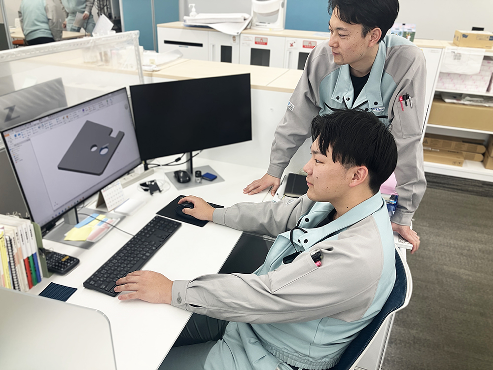 先輩方が忙しい中でも丁寧に相談に乗ってくれる、距離の近い職場環境が魅力です。入社後の1年間の技能研修では、設計・技能・製造研修を同期と一緒に受けることができ、強い横のつながりができました。部署を越えて協力しやすく、チームで開発を進められる雰囲気があります。また、研修制度や有給の取得しやすさ、リフレッシュ休暇なども整っており、働きやすさを実感しています。